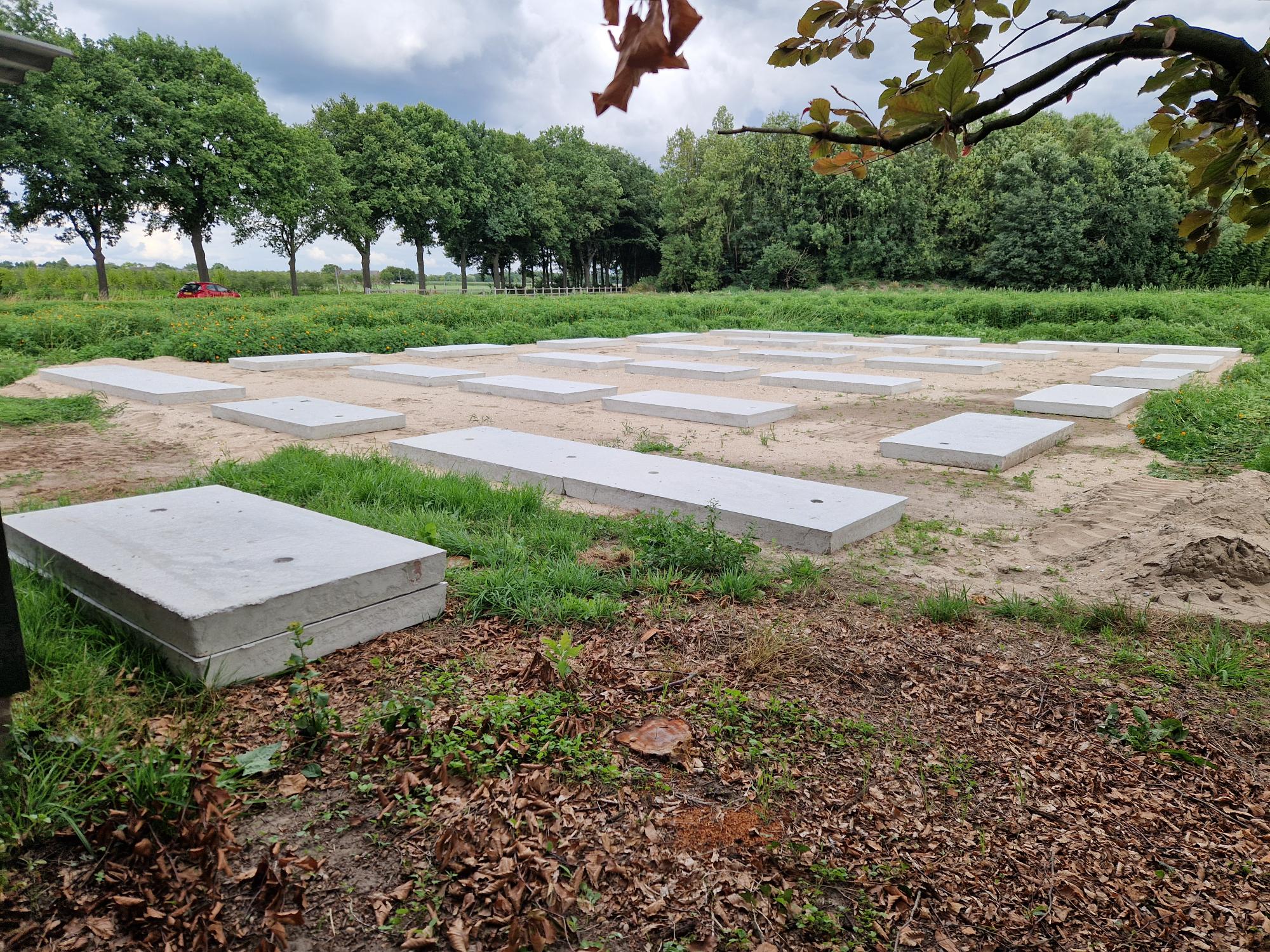 De betonplaten zijn door deze klant ingekocht als funderingsplaten.