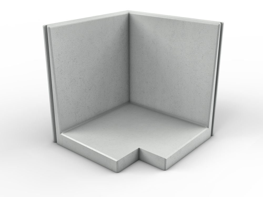 Een hoek keerwand is een speciaal betonnen element dat gebruikt wordt om een strakke, stevige hoekconstructie te maken binnen een keerwandopstelling. Het vormt de verbinding tussen twee keerwanden die haaks op elkaar staan (90 graden), en zorgt voor stabiliteit en een nette afwerking van de overgang.