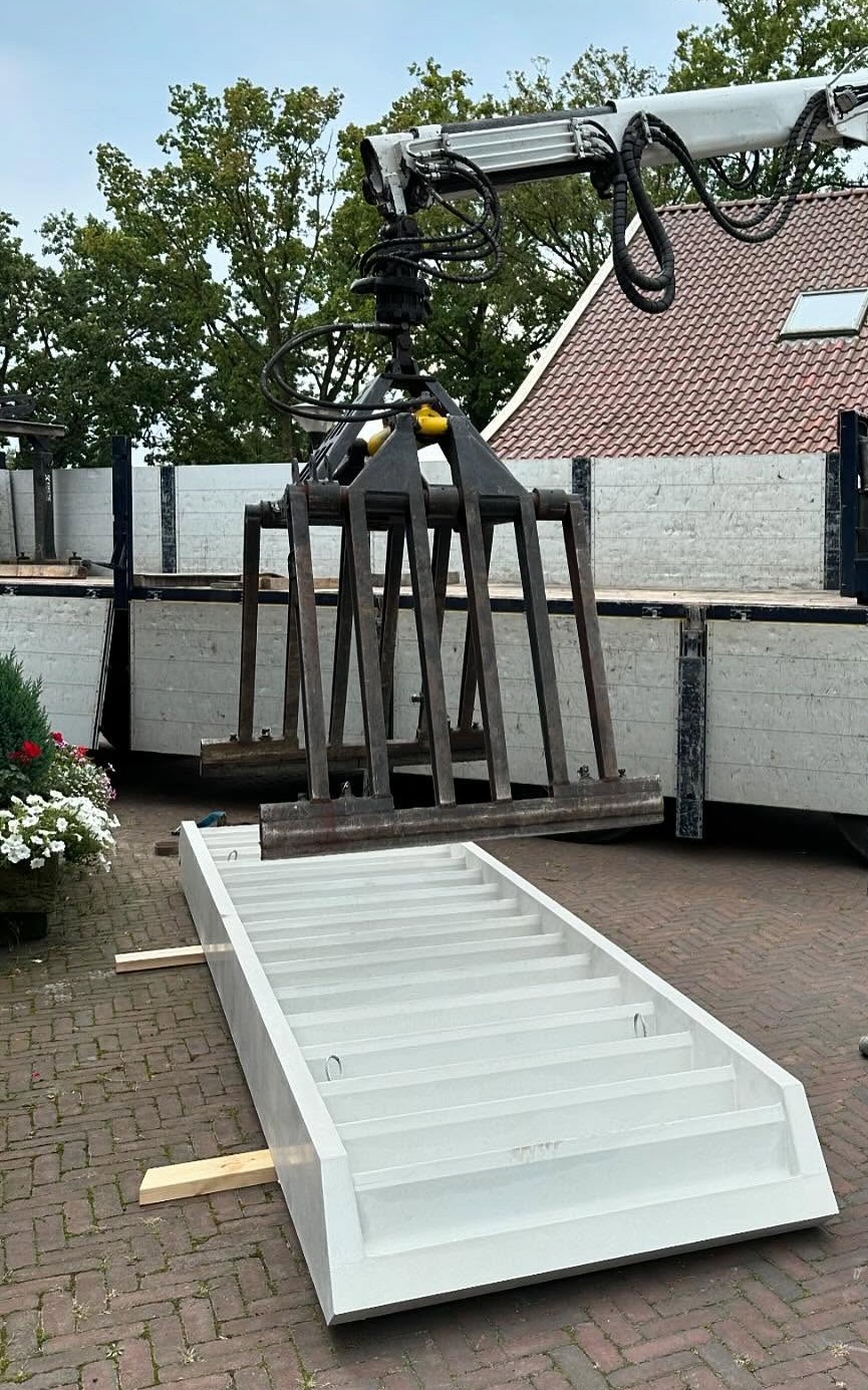 Vervolgens vervoert onze transporteur het naar jouw huis of project. Het transport van betonnen trappen vraagt om specialistische kennis, het juiste materieel en een nauwkeurige werkwijze. Een trap weegt namelijk gemiddeld wel 2700kg.
