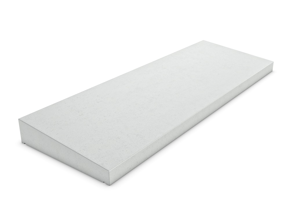 Enkelzijdige betonnen muurafdekker of afdekband. In lengte variabel. Waterhol aan beide kanten. Bij afname van muurafdekkers brengen we transportkosten in rekening. Voor de eerste afdekker is deze relatief hoog, voor alle andere afdekkers komt er slecht vijf euro per product aan transportkosten bij. Je kunt je bestelling ook gratis afhalen in Lunteren (Gelderland).