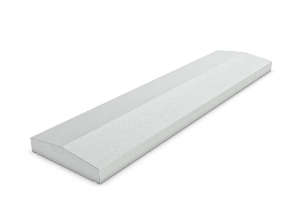 Tweezijdige betonnen muurafdekker of afdekband. In lengte variabel. Waterhol aan beide kanten. Bij afname van muurafdekkers brengen we transportkosten in rekening. Voor de eerste afdekker is deze relatief hoog, voor alle andere afdekkers komt er slecht vijf euro per product aan transportkosten bij. Je kunt je bestelling ook gratis afhalen in Lunteren (Gelderland).