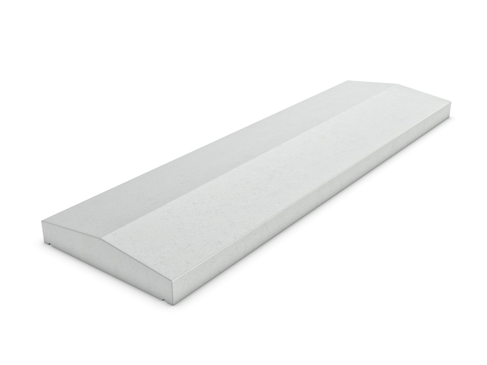 Tweezijdige betonnen muurafdekker of afdekband. In lengte variabel. Waterhol aan beide kanten. Bij afname van muurafdekkers brengen we transportkosten in rekening. Voor de eerste afdekker is deze relatief hoog, voor alle andere afdekkers komt er slecht vijf euro per product aan transportkosten bij. Je kunt je bestelling ook gratis afhalen in Lunteren (Gelderland).