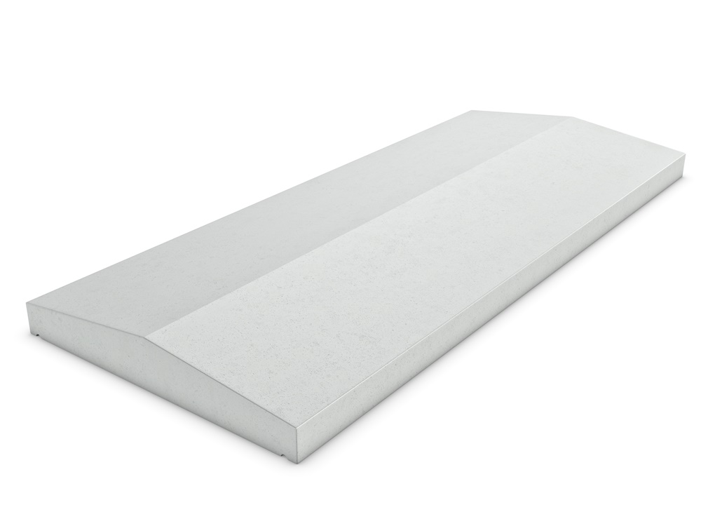 Tweezijdige betonnen muurafdekker of afdekband. In lengte variabel. Waterhol aan beide kanten. Bij afname van muurafdekkers brengen we transportkosten in rekening. Voor de eerste afdekker is deze relatief hoog, voor alle andere afdekkers komt er slecht vijf euro per product aan transportkosten bij. Je kunt je bestelling ook gratis afhalen in Lunteren (Gelderland).